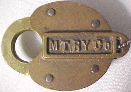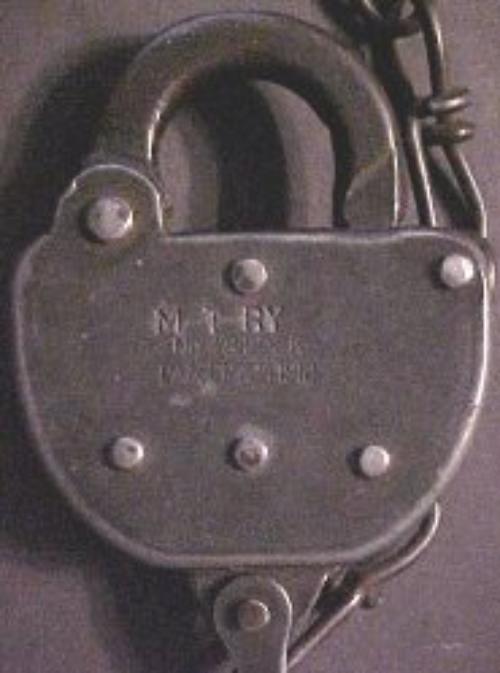 Steel M T RY switch lock by adlake with a 1912 date